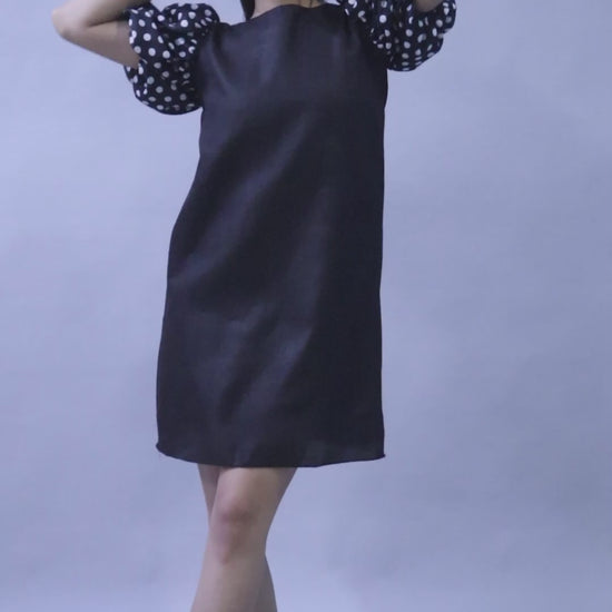 Black Dress with Polkadot Puff Sleeves