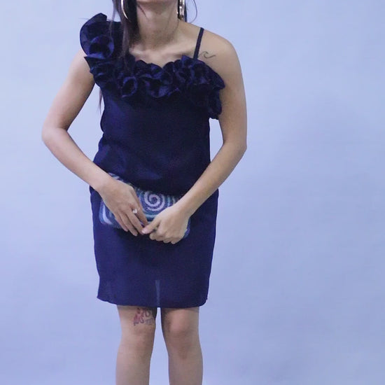 Neckline: Asymmetrical neckline with Ruffle Detail