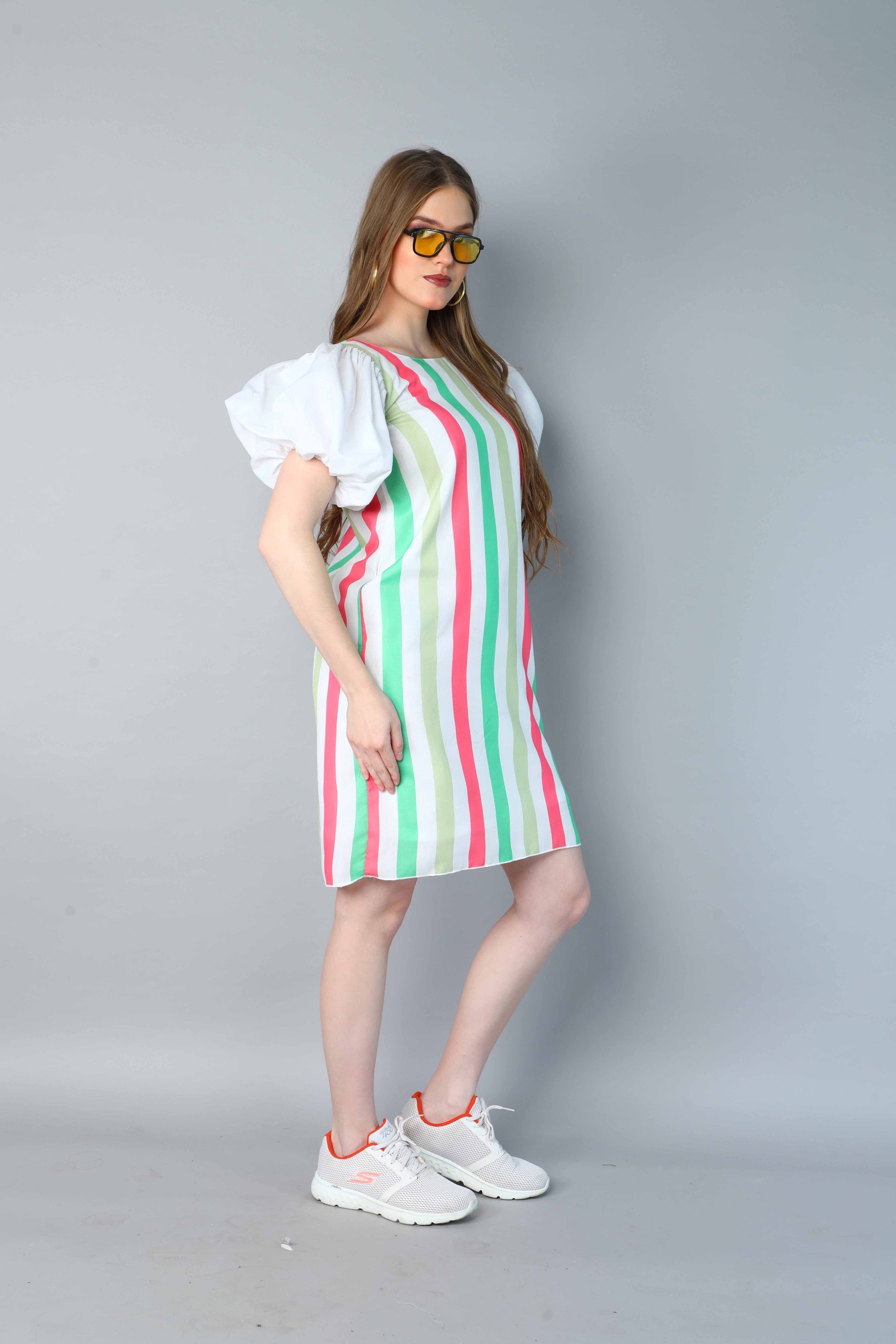 Simple, elegant, and effortlessly stylish — this Puff Sleeve Cotton Dress is a timeless essential for your everyday wardrobe. Designed with a round neckline, knee-length straight cut, and soft puff sleeves, it offers both comfort and charm. The button-hole closure at the back ensures easy wear, while the minimalist silhouette makes it ideal for dressing up or down.