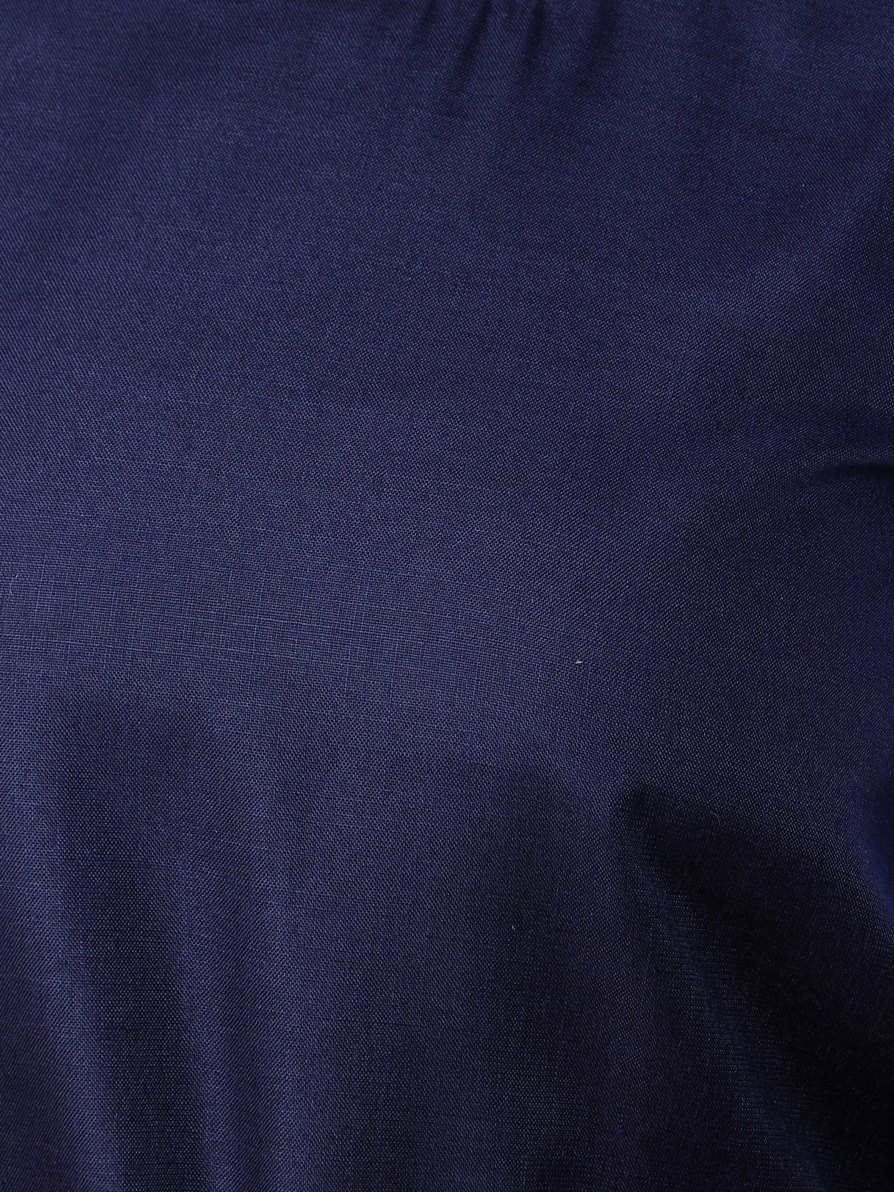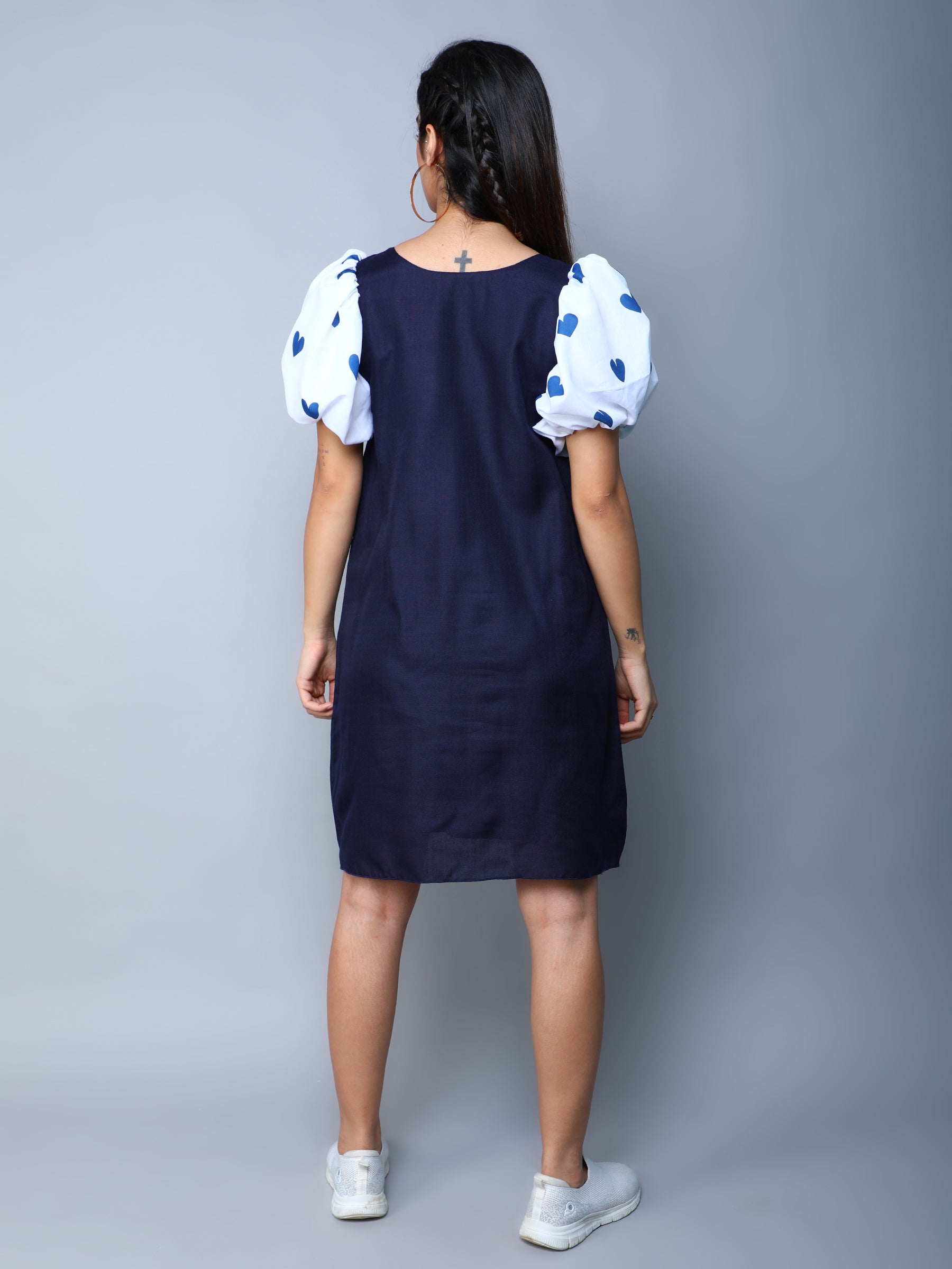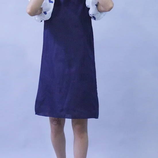 Navy Blue Dress with Printed Puff Sleeves